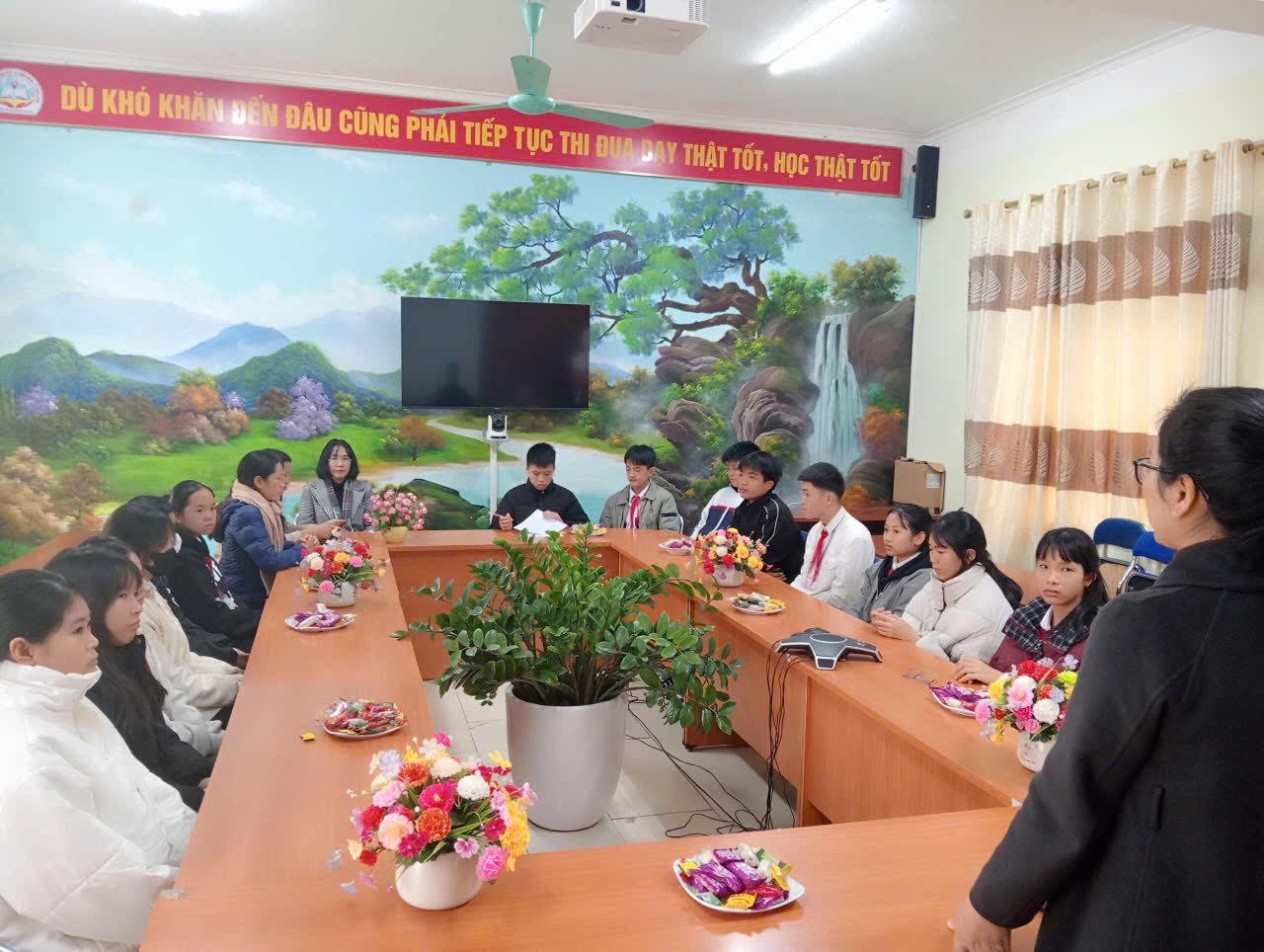 Mở đầu buổi gặp mặt, cô giáo Lê Thị Hồng đã phát biểu, gửi lời chúc mừng và biểu dương những nỗ lực của các em học sinh trong quá trình học tập và rèn luyện. Cô ghi nhận công lao của các thầy cô giáo đã tận tình hướng dẫn, kịp thời động viên, giúp các em phát huy năng lực, niềm yêu thích đối với từng môn học. Cô nhấn mạnh rằng kỳ thi học sinh giỏi cấp tỉnh không chỉ là cơ hội để các em thể hiện trí tuệ, mà còn rèn luyện sự tự tin, bản lĩnh và ý chí vươn lên.