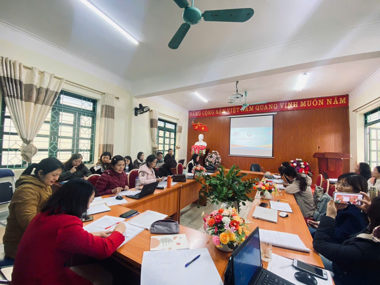 Buổi sinh hoạt chuyên môn có ý nghĩa quan trọng trong việc nâng cao năng lực sư phạm số cho đội ngũ giáo viên nhà trường. Thông qua trao đổi, thảo luận và chia sẻ kinh nghiệm, giáo viên được định hướng rõ hơn trong đổi mới phương pháp dạy học, phát huy tính tích cực, chủ động của học sinh, đồng thời từng bước hình thành tư duy dạy học hiện đại.