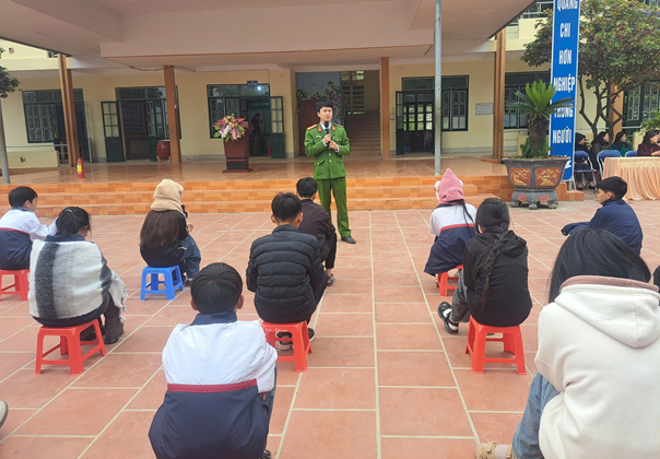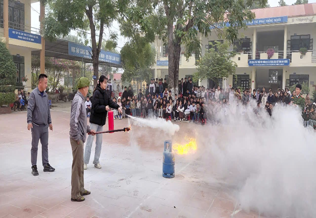 Tại buổi tuyên truyền, trải nghiệm, cán bộ Đội Cảnh sát PCCC Công an tỉnh Điện Biên đã phổ biến, hướng dẫn giáo viên, học sinh các kiến thức pháp luật và một số kỹ năng cơ bản về phòng cháy, chữa cháy trong trường học: Tắt các thiết bị điện gồm: quạt, đèn, máy chiếu sau mỗi buổi học hoặc khi rời khỏi phòng; Không mang vật dễ cháy nổ như bật lửa, pháo, xăng dầu, bình gas mini vào khuôn viên trường; Không đốt giấy, rác hoặc nấu nướng trong lớp học, khu vực hành lang; Khi phát hiện có mùi khét, khói hoặc tia lửa điện, cần báo ngay cho giáo viên, bảo vệ hoặc gọi số 114 để được hỗ trợ kịp thời; Biết vị trí bình chữa cháy, cầu dao điện, lối thoát hiểm trong khuôn viên trường; Khi có cháy, giữ bình tĩnh, hô to báo động, sử dụng bình chữa cháy hoặc nước, vật ướt để dập lửa nếu có thể. Sau đó nhanh chóng di chuyển ra khu vực an toàn theo hướng dẫn.